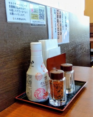 中央の白い瓶は天ぷらに振りかける岩塩。
