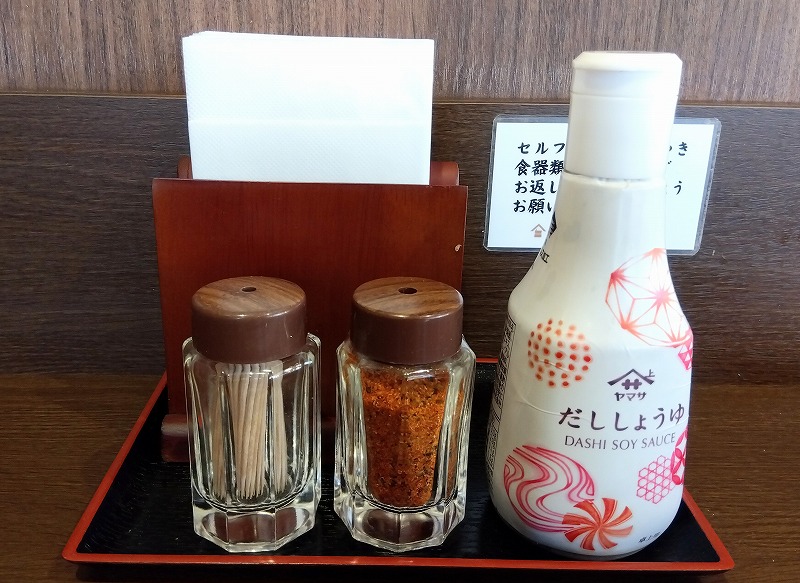 中央の白い瓶は天ぷらに振りかける岩塩。